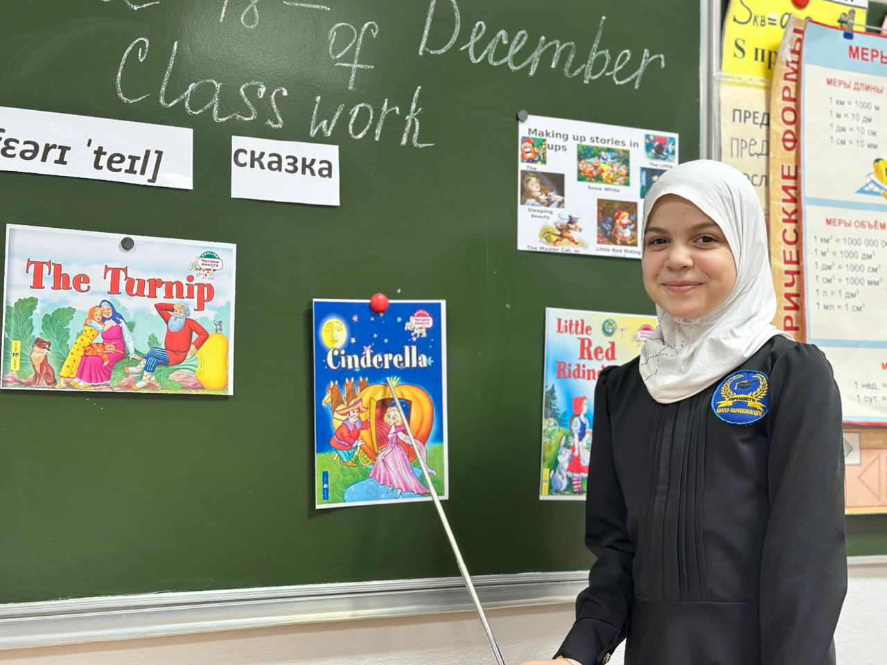18 декабря в 4 В классе Центра образования «Личность» прошел урок английского языка по теме: «Любимая сказка (описание любимой сказки, описание персонажей, чему нас учат сказки)»  Учитель английского языка Шавхалова Марьям Бадруддиевна с первых минут урока сумела заинтересовать учащихся и привлечь их внимание. Она следит за тем, чтобы все дети работали и умело направляет тех учащихся, которые затрудняются ответить на вопрос. На уроке у Марьям Бадруддиевны много наглядности, которая используется по назначению.